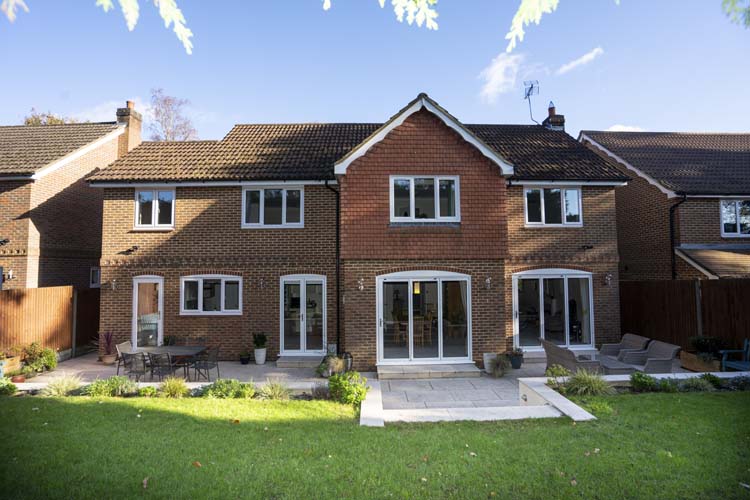 The combination of classic Georgian styling at the front and sleek contemporary doors at the rear perfectly reflects the home’s balanced design approach.