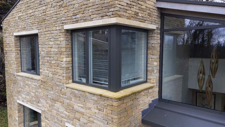 Externally, the aluminium frames are finished in RAL 7013 Matt (Brown Grey). This muted earth tone works beautifully alongside the property’s drystone brickwork and timber cladding, helping the building blend naturally into the Somerset landscape.