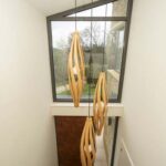 A dramatic double-height glazing installation in the entrance hall creates a striking focal point that evokes light and openness.