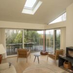 Beyond the large sliding doors, several bespoke glazing elements enhance the property’s architectural character.