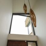 Internally, the doors feature H9016 opaque white timber finishes, creating a bright, refined interior aesthetic that complements the natural plaster finishes and neutral colour palette throughout the house.